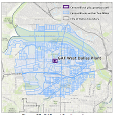 In an average year, GAF paid only $7,760,846 in wages to workers living in Dallas, and less than $1,071,218 in wages to workers living within 2 miles of the plant, out a total estimated labor cost of $24,521,303. Nearly 100% of the detrimental impacts of the plant’s activities were felt by residents proximate to the plant, but only 4.4% of the plant’s potential benefit through wages was received by local residents.