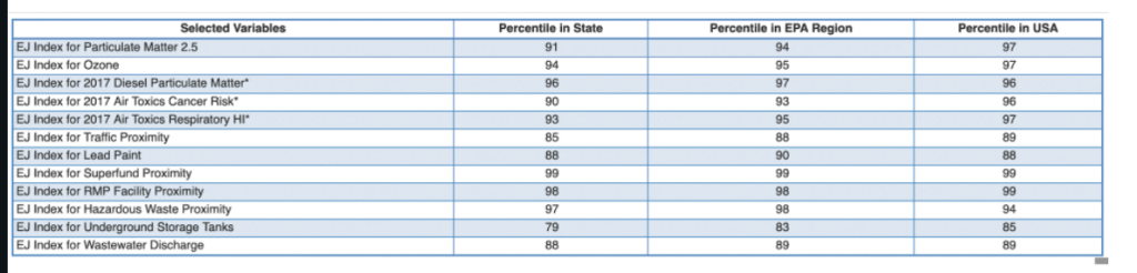 Singleton Corridor’s neighborhoods are ranked in the top 10% of the nation’s most toxic communities in 8 out of 12 indicators, including: