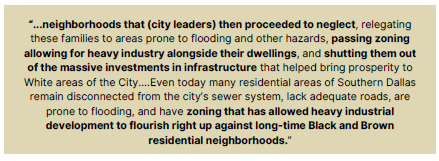 This is exactly the kind of disproportionate burden described in the City of Dallas’ own Comprehensive Housing Policy Racial Equity Assessment, released in October 2021: