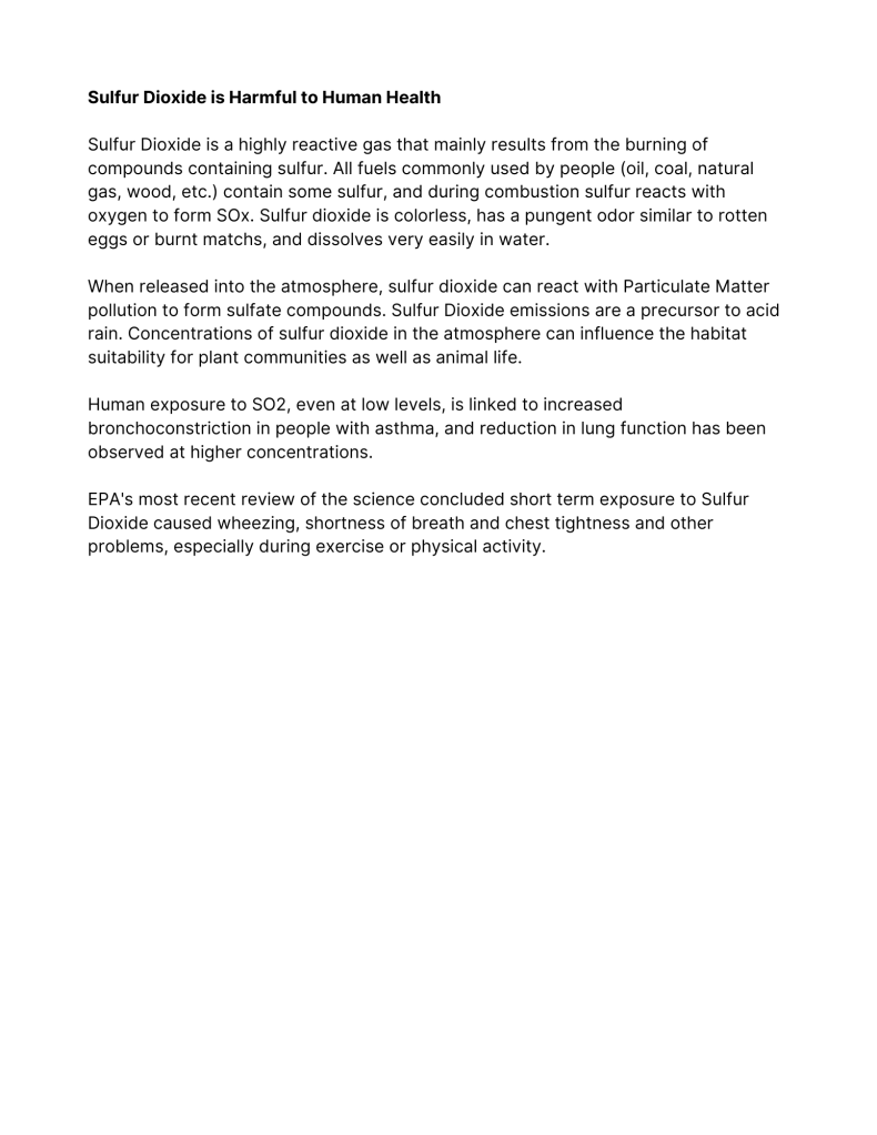 Research over the last 25 years has failed to establish a “safe level” of exposure to Particulate Matter. That is, there appears to be no level of exposure to PM that can’t result in a human health harm. These harms can occur in any organ in the body since microscopic particles of PM can pass through the lungs into the bloodstream.